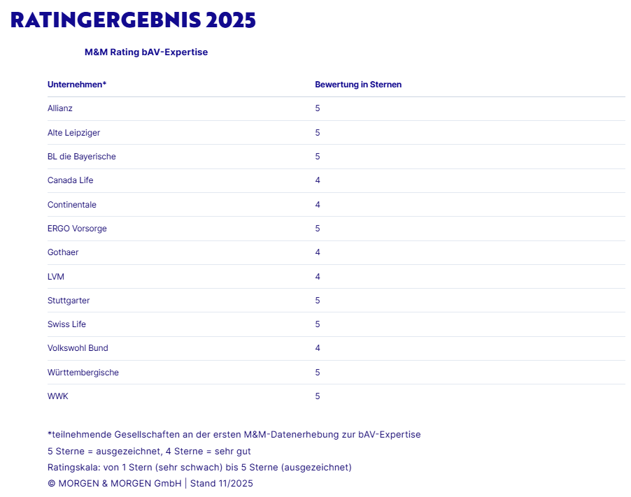 MORGEN & MORGEN PRÄSENTIERT ERSTES RATING ZUR BAV-EXPERTISE VON VERSICHERERN
