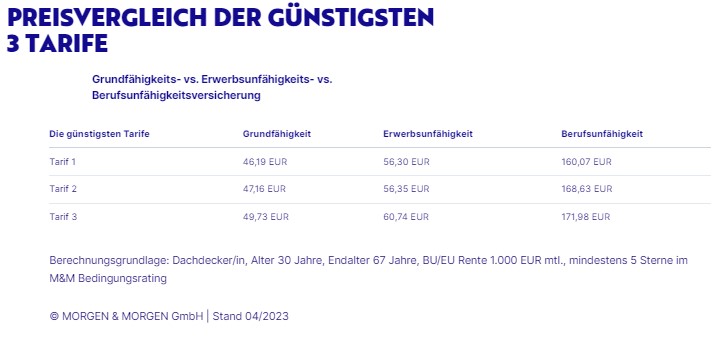 | Die günstigsten Tarife | Grundfähigkeit | Erwerbsunfähigkeit | Berufsunfähigkeit |