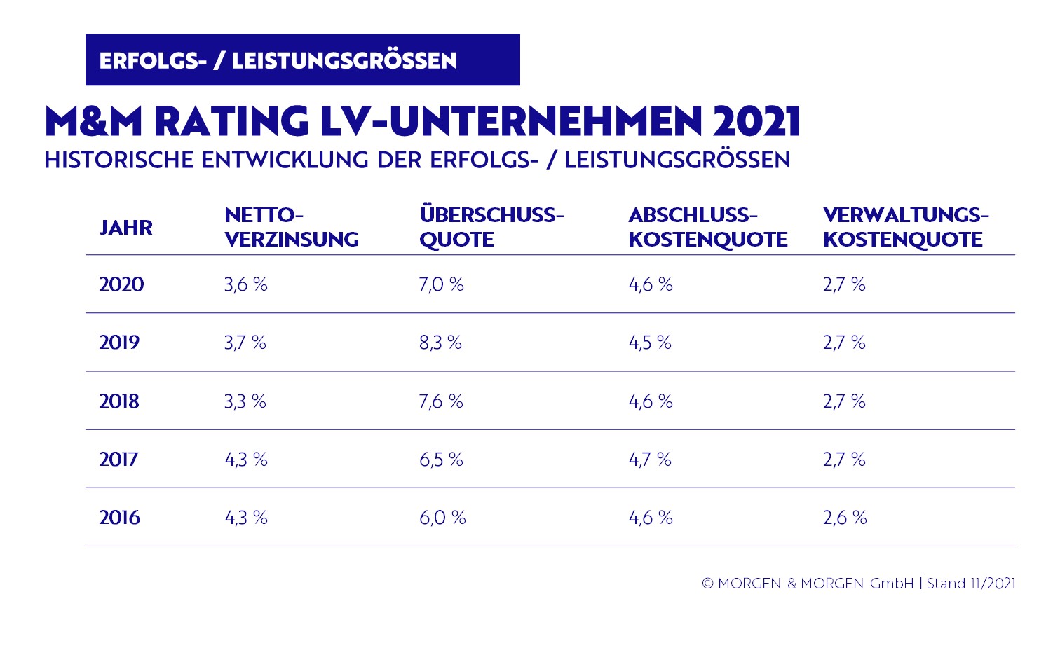 Der aktuelle Jahrgang des M&M Rating LV-Unternehmen betrachtet die Geschäftsberichtzahlen von 2016 bis 2020 der deutschen Lebensversicherer. Insgesamt werden 59 Unternehmen bewertet, vier weniger als im Ratingjahrgang 2020.