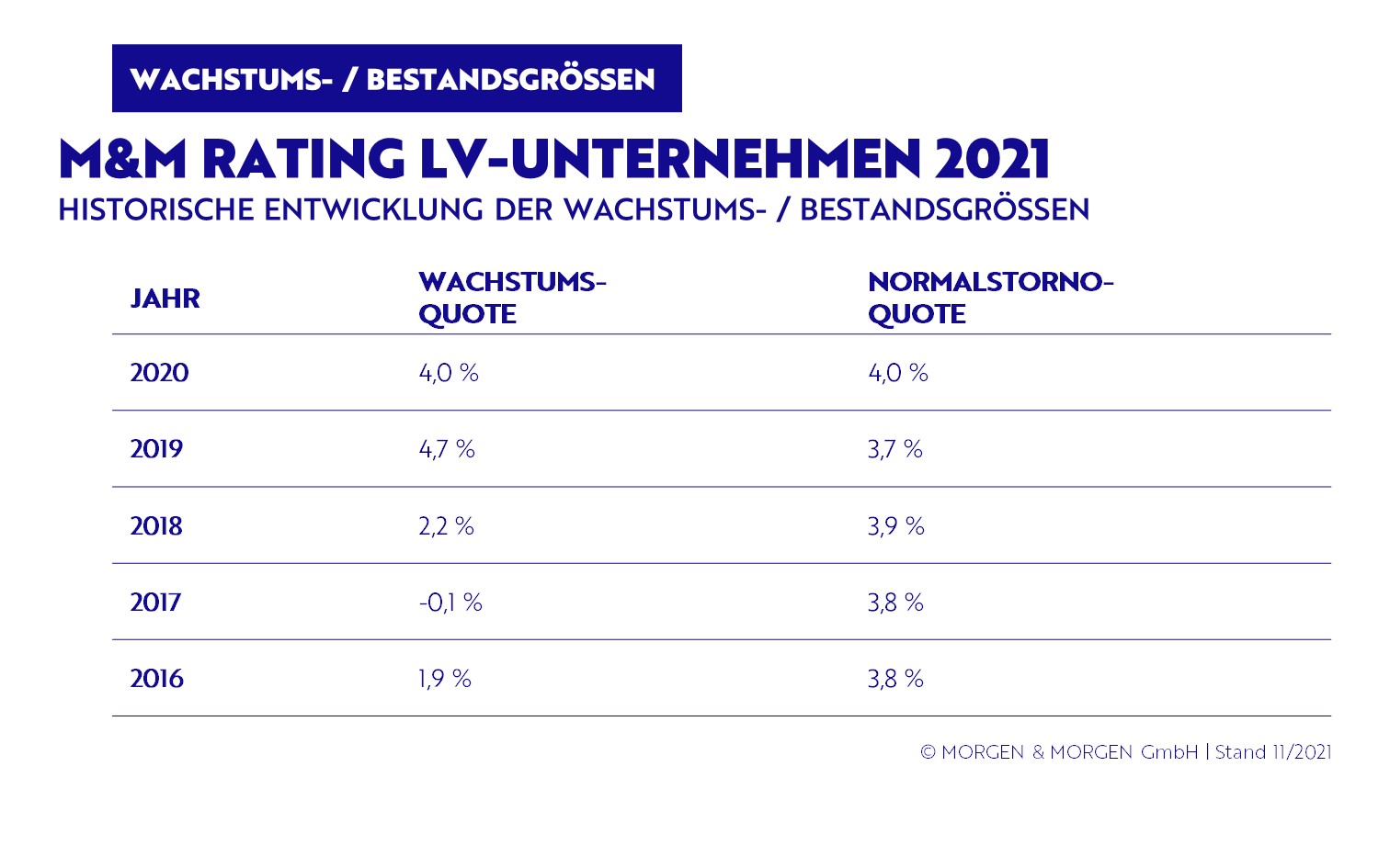 | Jahr | Wachstumsquote | Normalstornoquote |