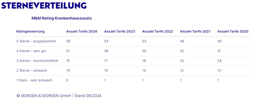 | Ratingbewertung | Anzahl Tarife 2024 | Anzahl Tarife 2023 | Anzahl Tarife 2022 | Anzahl Tarife 2021 | Anzahl Tarife 2020 |