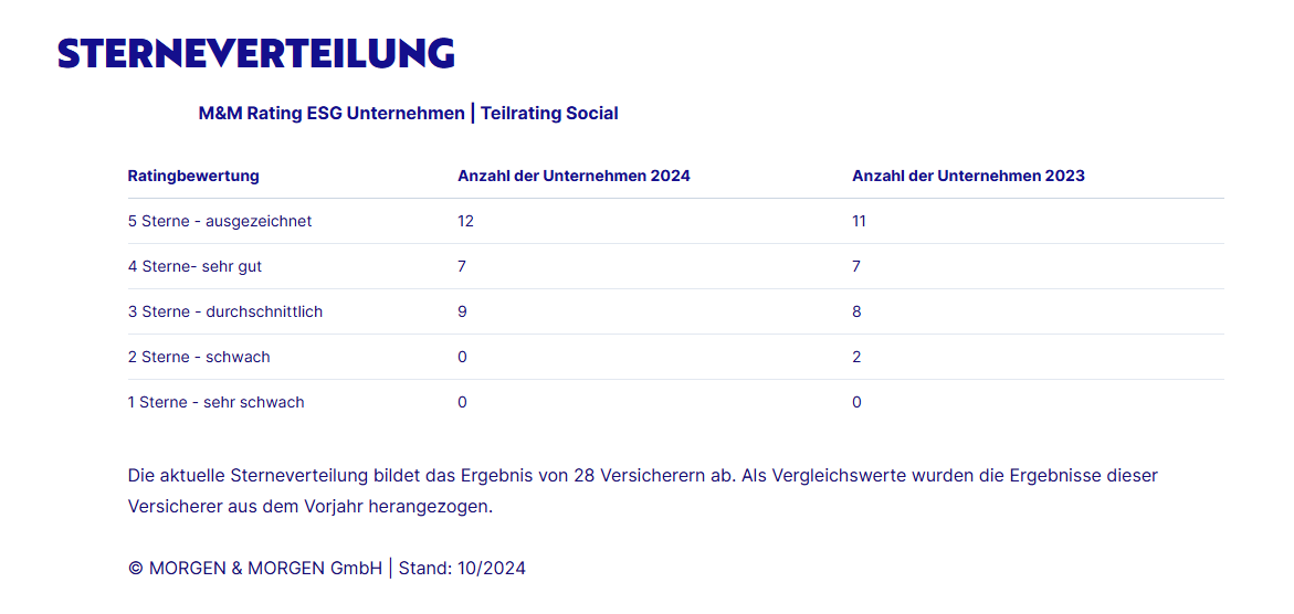 Die aktuelle Sterneverteilung bildet das Ergebnis von 28 Versicherern ab. Als Vergleichswerte wurden die Ergebnisse dieser Versicherer aus dem Vorjahr herangezogen.