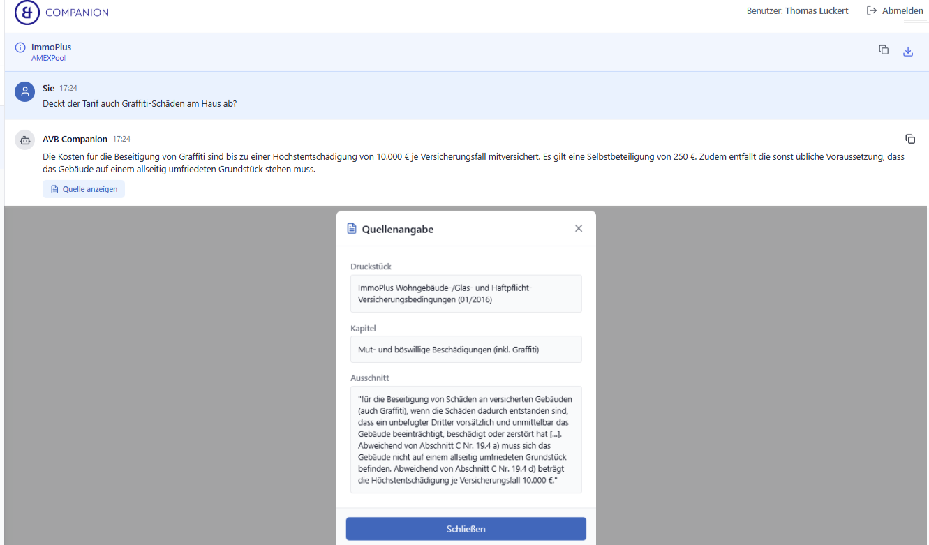 Ihr Vorteil: Sie erhalten schnelle, verlässliche Antworten ohne Rückfragen oder lange Wartezeiten und können Entscheidungen direkt auf Basis klar belegter Informationen treffen.