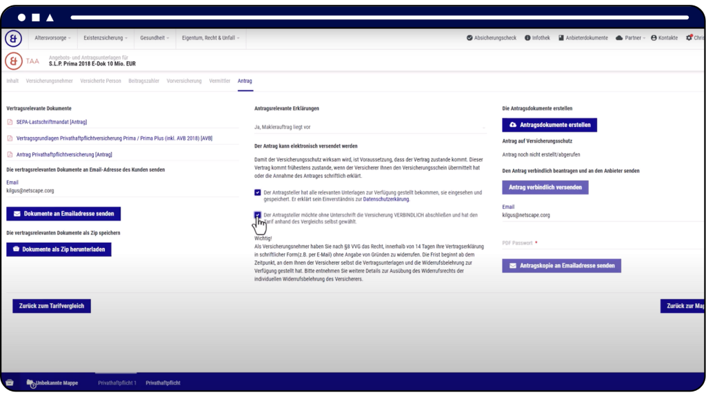 • Erstellung von Angeboten und Anträgen inklusive E-Signatur und Beratungsdokumentation